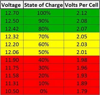 12.2 volts – About 50% charged