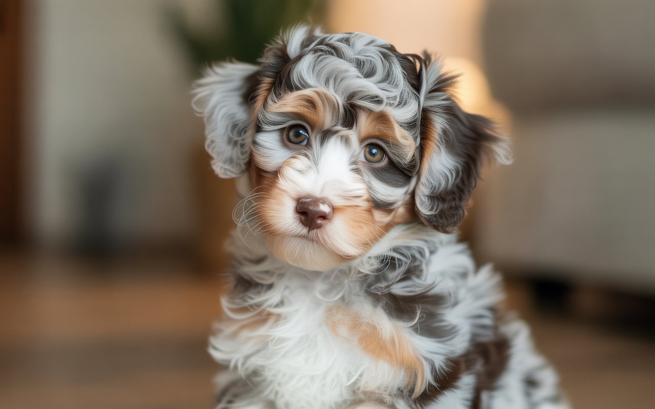 Mini Aussiedoodles usually have soft, wavy, or curly coats. Their faces often appear expressive, almost human-like, as if they understand every word you say.
